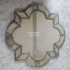 This Antique Convex Mirror has a unique classic design with a distinctive antique touch. This mirror is circular with a convex center (Round Convex Mirror), giving a different reflection effect from ordinary flat mirrors. On the frame, there are decorative details in the form of antique glass with a distressed effect that gives an elegant vintage look. The carved glass elements surrounding the center further enhance the luxurious and historic impression.