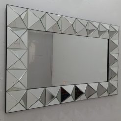 Rectangular wall mirror using 5mm thick mirror glass, 18mm thick plywood frame, with silver finish frame. The edges of the mirror are bevelled to make the mirror look neater. Can be customised for size or colour according to your needs and preferences.